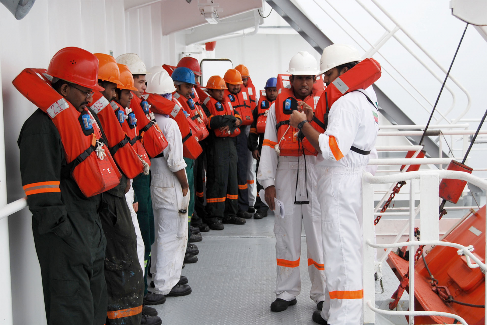 24 Männer arbeiten auf dem Schiff. Der Kapitän stammt aus der Ukraine, die Crew von den Philippinen, aus Sri Lanka und Rumänien.